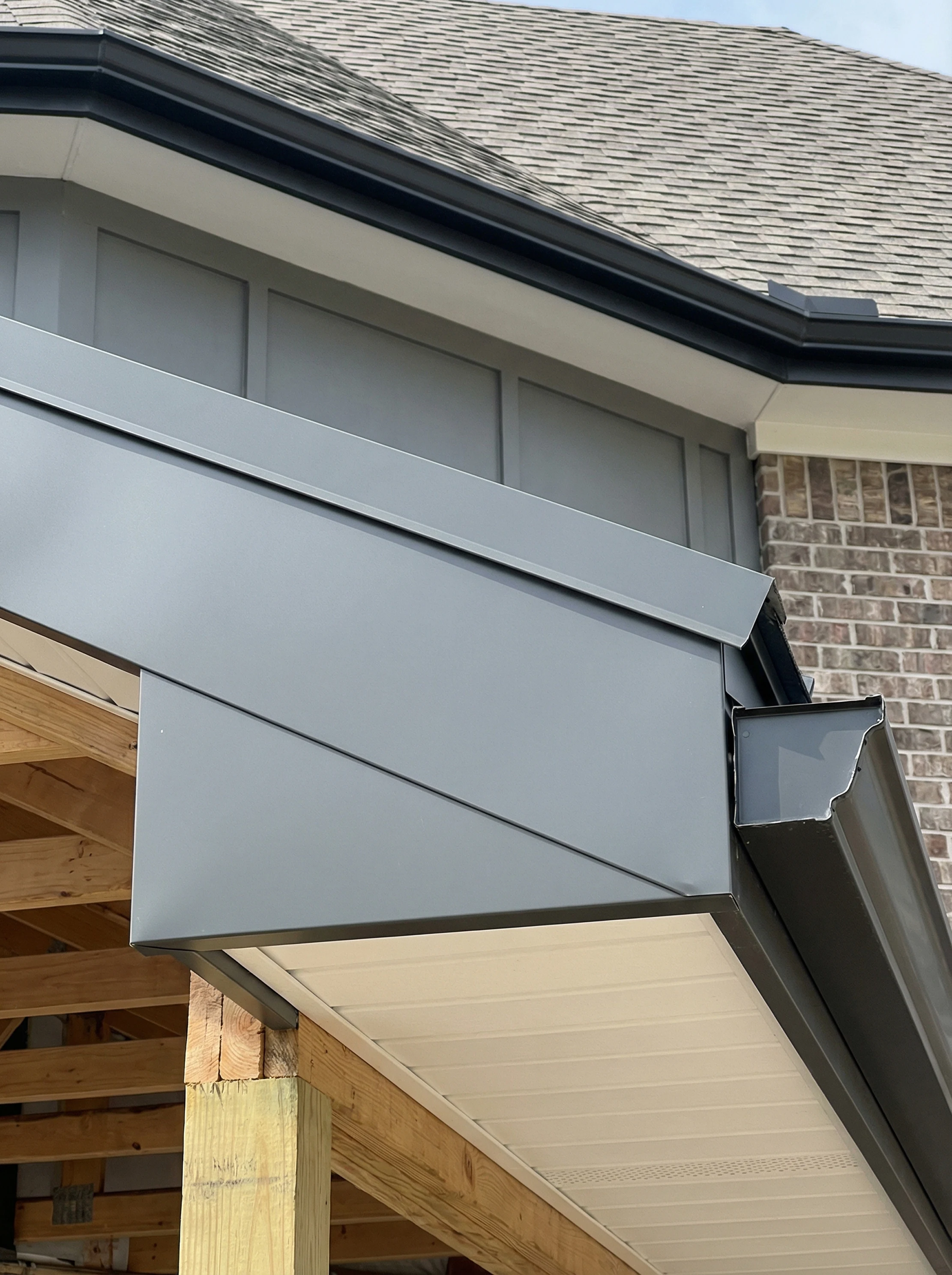 Aluminum fascia and soffits are installed with straight lines and careful detail.