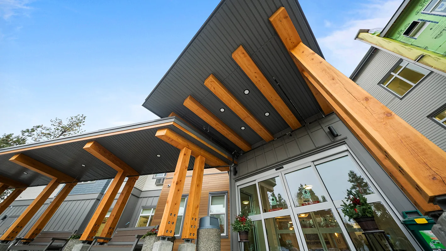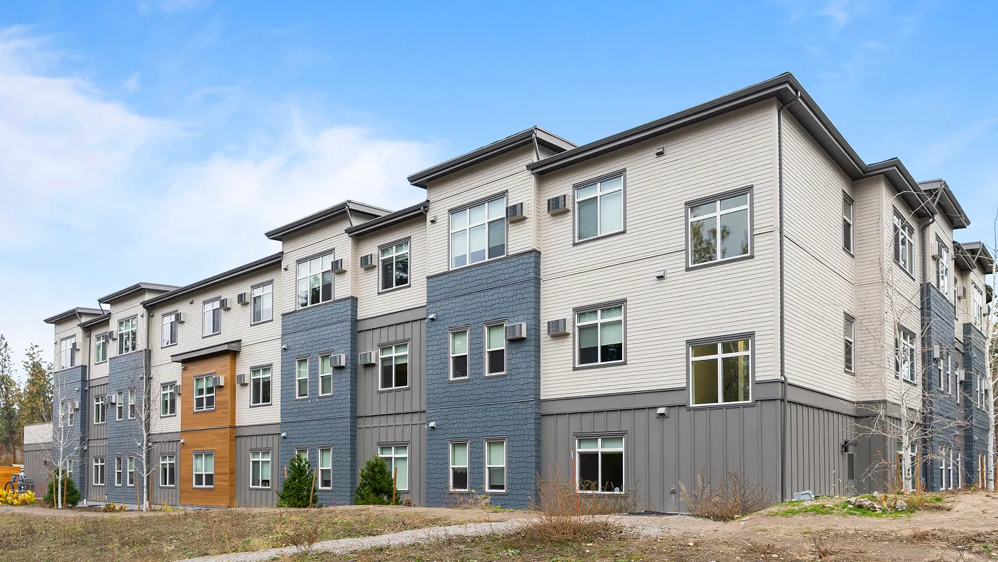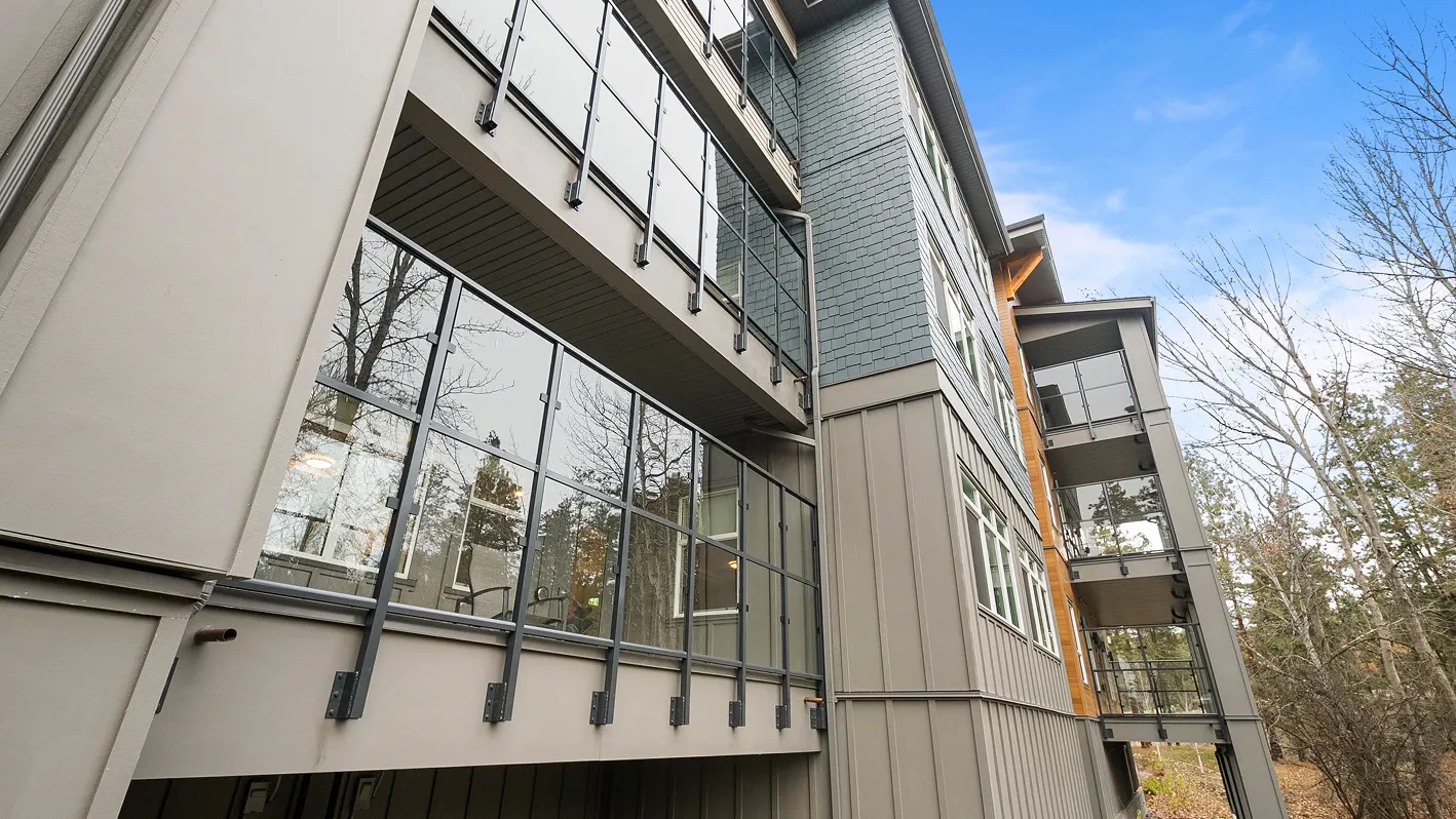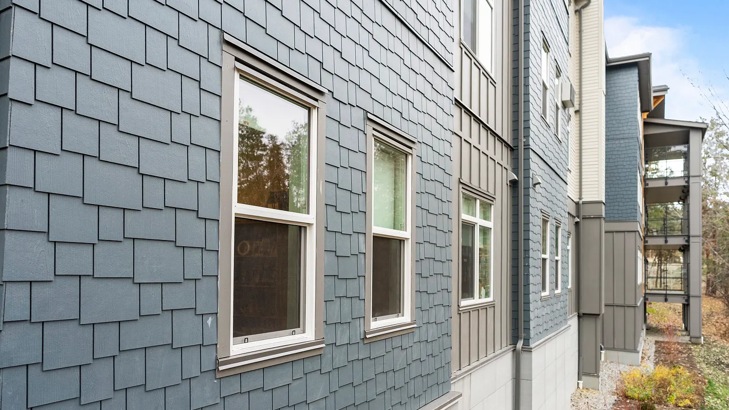 A commercial cladding project featuring James Hardie and Lux Aluminum siding in Kelowna, BC.