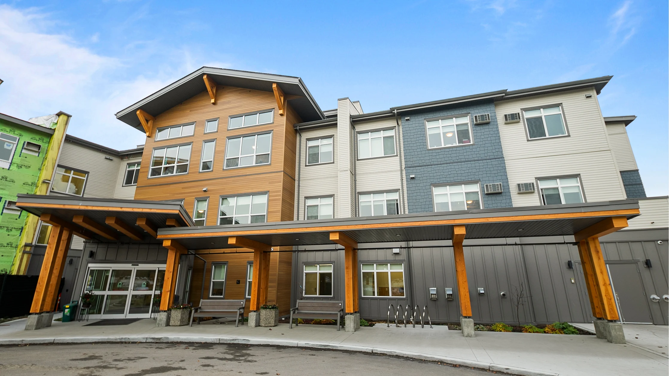 Nearly 55,000 square feet of exterior cladding had to be installed while concrete crews and landscapers followed closely behind, all racing against winter conditions.